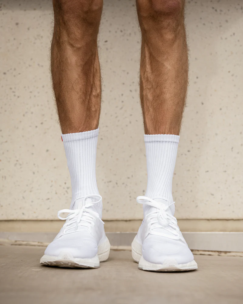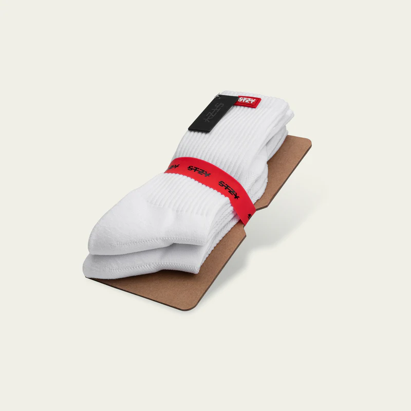 The STZY BADGE Crew Socks feature a hybrid build, engineered for both functionality and style. Our Athlia blend® offers a cloud like material, soft on every step with a lightweight consistency that makes you second guess if you have them on. This blend features targeted cushioning under the heel & forefoot with a vented top to provide optimal air flow. Our Patent pending materials that make up the Athlia Blend® is exclusively developed for STZY Socks. The material has a feel that is lightweight & creamy yet capable for all things performance. The timeless design, ease and quality allows movement through a modern lifestyle, for any occasion.